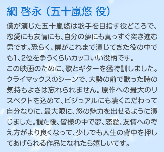 綱啓永がギターと歌を披露!来年公開の映画でキムタク娘と共演へ。
